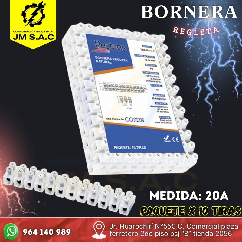 • BORNERA REGLETA PVC TIPO U 20A X PAQUETE DE 10 TIRAS
