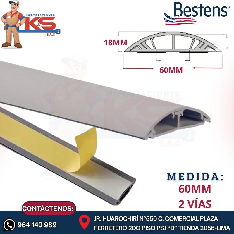 • CANALETA DE PISO 60MM X 18MM X 2MTS 2 VÍAS GRIS CON ADHESIVO