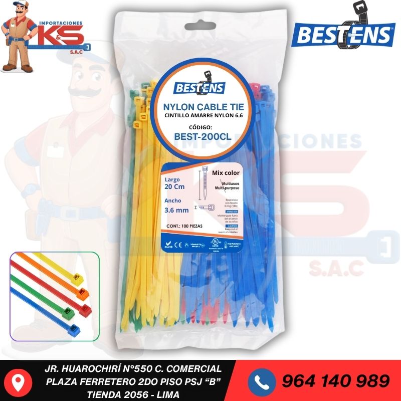 • CINTILLO DE NYLON 6.6 COLORES MIXTOS (UL) 200X3.6MM (10CM) X 100PZ sirve para un trabajo de cableado perfecto.