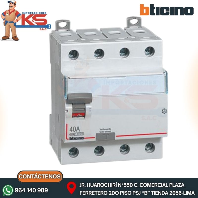 • INTERRUPTOR DIFERENCIAL 4P 40A 30MA 230V TIPO AC STD SALVAVITA